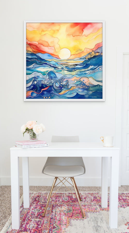 Seaside Serenity - Sunset Over the Sea Eco Canvas Fine Art Print